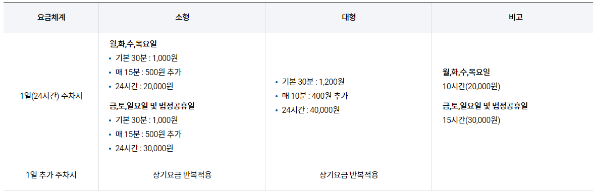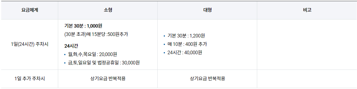 - 1일(24시간) 주차 시