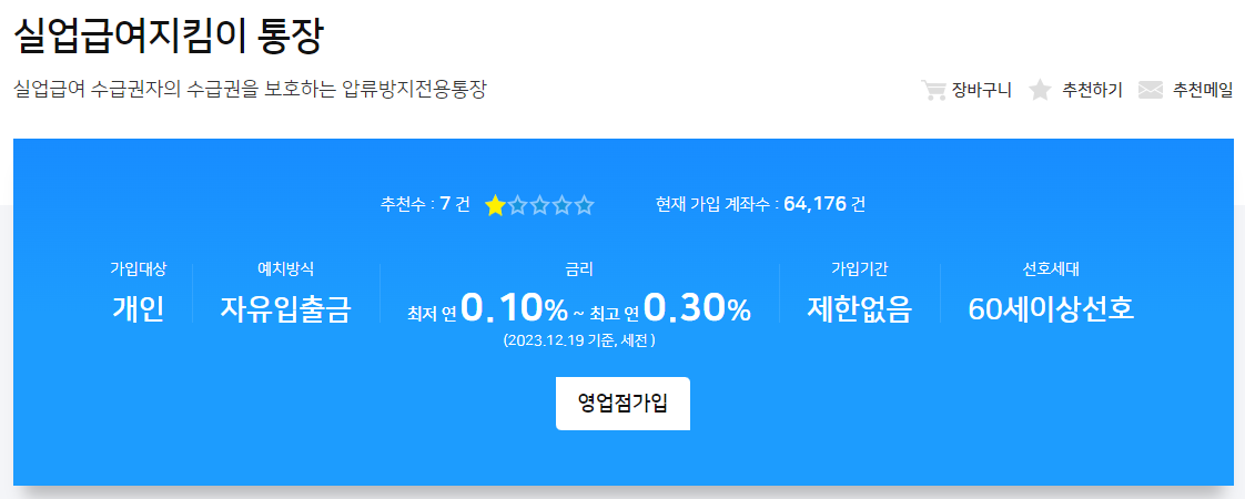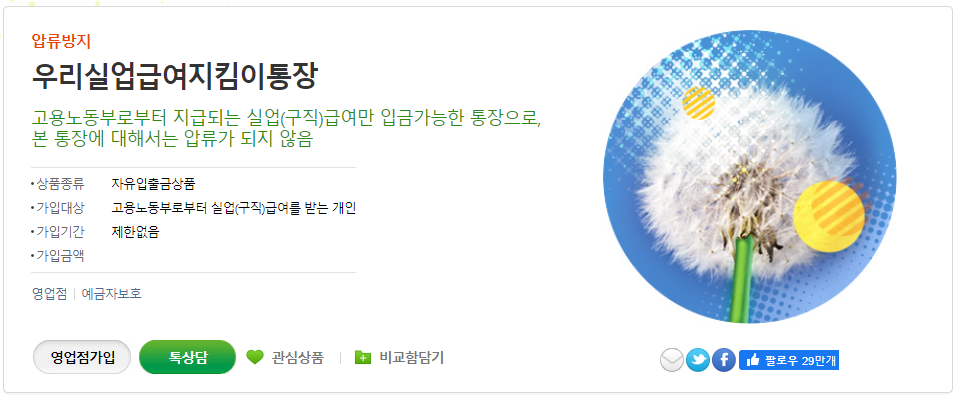 지금까지 압류방지 통장 실업급여 지킴이통장 개설 발급방법 서류 농협 우리은행에 대하여 알아보았습니다.
